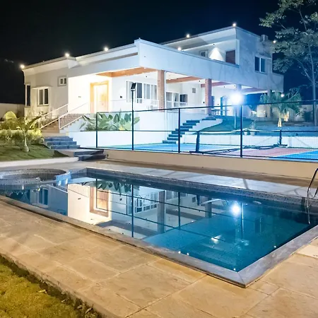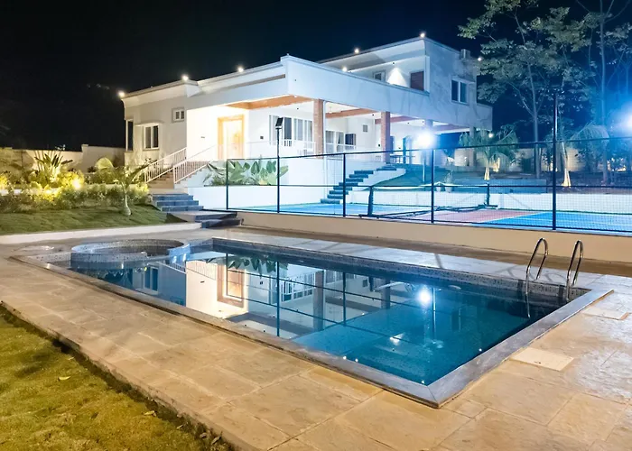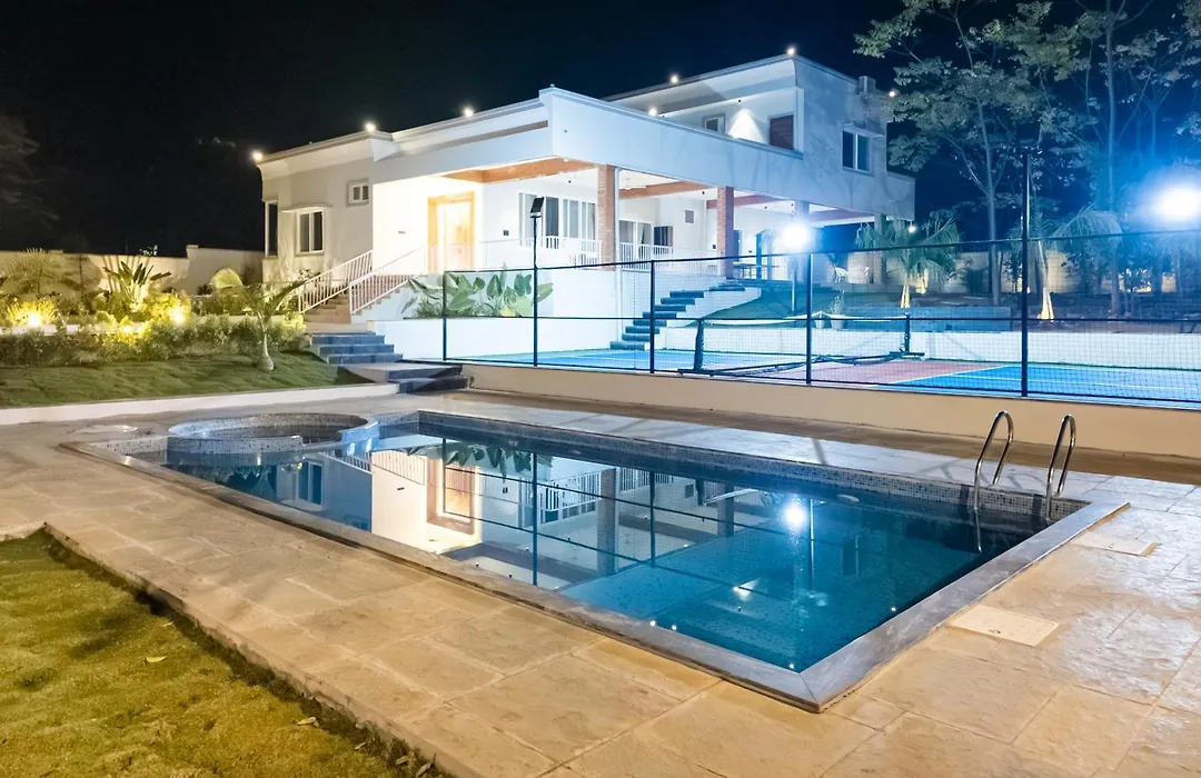 Kailasa Pickleball And Play Retreat Hyderabad villa offers guests a relaxing experience with a plunge pool.